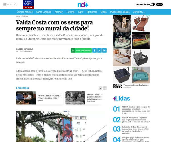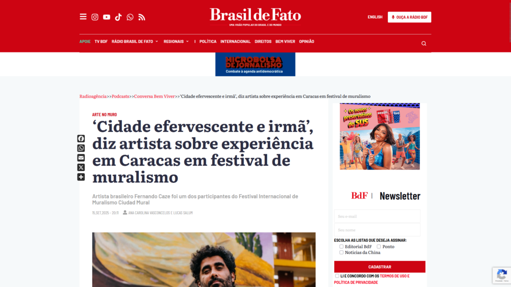 Há quase dez anos, trabalha com muralismo, desenvolvendo a pesquisa Biografias Urbanas, que investiga a relação entre território, trabalho e cotidiano. Suas obras nascem de registros fotográficos próprios, trazendo personagens muitas vezes invisibilizados como protagonistas de suas narrativas visuais. Seus murais estão presentes no Brasil e em países como Guiné-Bissau, Portugal, França, Inglaterra, Alemanha, Peru, Equador, Colômbia e Venezuela.